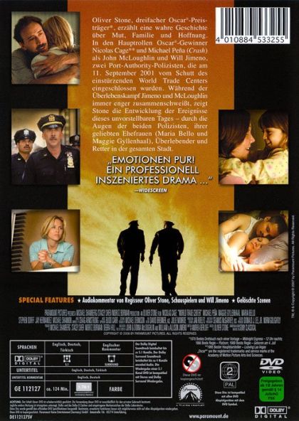 Oliver Stone, dreifacher Oscar®-Preisträger, erzählt eine wahre Geschichte über Mut, Familie und Hoffnung. In den Hauptrollen Oscar®-Gewinner Nicolas Cage und Michael Peña (Crash) als John McLoughlin und Will Jimeno, zwei Port-Authority-Polizisten, die am 11. September 2001 vom Schutt des einstürzenden World Trade Centers eingeschlossen wurden. Während der Überlebenskampf Jimeno und McLoughlin immer enger zusammenschweißt, zeigt Stone die Entwicklung der Ereignisse dieses unvorstellbaren Tages - durch die Augen der beiden Polizisten, ihrer geliebten Ehefrauen (Maria Bello und Maggie Gyllenhaal), Überlebender und Retter in der gesamten Stadt.