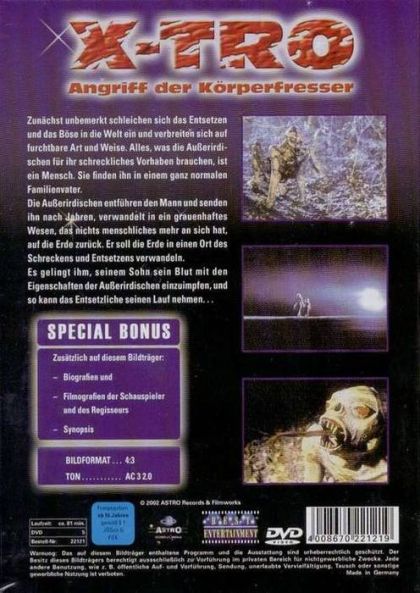 Zunächst unbemerkt schleichen sich das Entsetzen und das Böse in die Welt ein und verbreiten sich auf furchtbare Art und Weise. Alles, was die Außerirdischen für ihr schreckliches Vorhaben brauchen ist ein Mensch. Sie finden ihn in einem ganz normalen Familienvater.Die Außerirdischen entführen den Mann und senden ihn nach Jahren, verwandelt in ein grauenhaftes Wesen, das nichts menschliches mehr an sich hat, auf die Erde zurück. Er soll die Erde in einen Ort des Schreckens und Entsetzens verwandeln.Es gelingt ihm, seinem Sohn sein Blut mit den Eigenschaften der Außerirdischen einzuimpfen, und so kann das Entsetzliche seinen Lauf nehmen...
