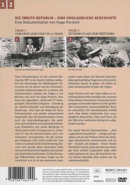 Diese Dokumentation ist der zentrale Beitrag des ORF zu den beiden Jubiläen anlässlich des Jahrestages der Wiedergeburt Österreichs vor 60 Jahren und der Unterzeichnung des Staatsvertrages vor 50 Jahren. Die Dokumentation umfasst vier Folgen à 100 Minuten und wird von Hugo Portisch, dem Autor der legendären "Österreich II"-Serie, gestaltet. Die beiden Ereignisse - Gründung der Zweiten Republik und Beendigung der Besatzung - sind zwar der Anlass für diese Dokumentation und werden entsprechen dargestellt, aber die Dokumentation nimmt auch die Lebensbedingungen, die politische, wirtschaftliche und kulturelle Entwicklung Österreichs und seiner Menschen in diesen Jahren wahr.Im Gegensatz zu "Österreich II" hat die Dokumentation auch eine Generation anzusprechen, die die damaligen Ereignisse nicht selbst erlebt hat. Fast nichts von damals ist für sie Erinnerung, dennoch wird gerade diese Generation mehr denn je mit bestimmten Aspekten der damaligen Gechichte konfrontiert. So hat die heutige Öffentlichkeit durchaus Fragen an die Geschichte und ist an den Antworten interessiert. Jeder dieser vier Teile der Dokumentation geht auf diese Fragen ein und versucht, Antworten darauf zu geben. Sie bilden jeweils Schwerpunkte in jeder der Folgen.Hugo Portisch und sein Team haben zur Erstellung dieser Dokumentation die neuesten Erkenntnisse historischer Forschung herangezogen und wurden dabei von einer großen Zahl kompetenter wissenschaftlicher Berater unterstützt. Die Dokumentation enthält auch viele bisher unbekannte bzw. unzugängliche Dokumente, Filme und Fotos, die mit Hilfe einer weltweiten Recherche aufgefunden wurden.Der zweite Titel der Dokumentation - "Eine unglaubliche Geschichte" - drängte sich geradezu auf, als das Portisch-Team die damaligen Geschehnisse rekonstruierte und dabei - Ereignis um Ereignis - immer wieder feststellen musste, dass das alles aus heutiger Sicht einfach unglaublich (aber eben wahr) gewesen ist. Dass die Geschichte dieser Zweiten Republik alles andere war als selbstverständlich.