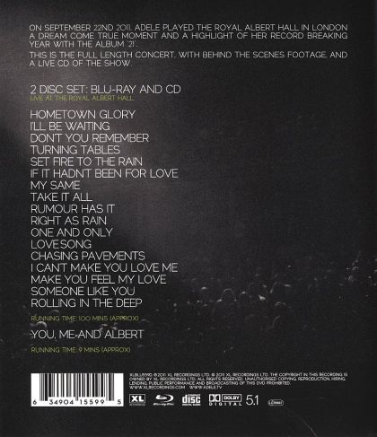 A live concert performance of Grammy-winning pop/soul sensation Adele Adkins at the Royal Albert Hall in London.