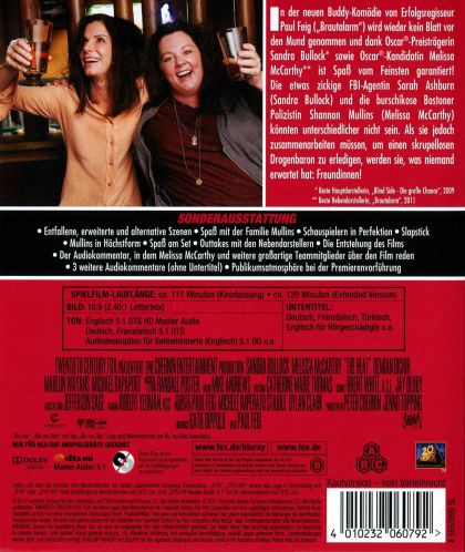 Uptight and straight-laced, FBI Special Agent Sarah Ashburn (Sandra Bullock) is a methodical investigator with a reputation for excellence--and hyper-arrogance. Shannon Mullins (Melissa McCarthy), one of Boston P.D.'s "finest," is foul-mouthed and has a very short fuse, and uses her gut instinct and street smarts to catch the most elusive criminals. Neither has ever had a partner, or a friend for that matter. When these two wildly incompatible law officers join forces to bring down a ruthless drug lord, they become the last thing anyone expected: buddies.