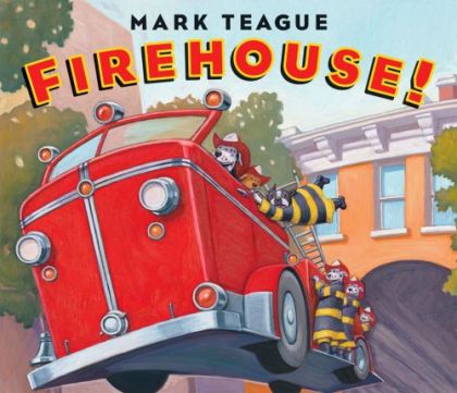Kindergarten-Grade 2 Teague is known and loved for his '40s-style acrylic paintings with hilariously odd perspectives, wry facial expressions, and a heavily ironic disconnect between text and pictures. Here, the nattily dressed, citified bulldog introduced in Funny Farm (Scholastic, 2009) visits the firehouse in hopes of becoming a real firefighter. The station's mice laugh as Edward tries on a shiny red fire hat, but the text fails to indicate that the pup has put it on backwards and is struggling to extricate his face. Nor can you tell from the impassive professional firefighters all Dalmatians, of course what wild blunders Edward makes as the team goes out for a drill. Still, when a real emergency occurs, Edward is the hero, and the story ends with a parade in his honor and, anticlimactically, a sound sleep. Children will enjoy Firehouse! for its mild humor, winsome and colorful illustrations, and depiction of firefighters at work. While it's not as funny as many other Teague books, it should attract a wide audience. Susan Weitz, formerly at Spencer-Van Etten School District, Spencer, NY.