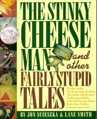 If geese had graves, Mother Goose would be rolling in hers. The Stinky Cheese Man and Other Fairly Stupid Tales retells--and wreaks havoc on--the allegories we all thought we knew by heart. In these irreverent variations on well-known themes, the ugly duckling grows up to be an ugly duck, and the princess who kisses the frog wins only a mouthful of amphibian slime. The Stinky Cheese Man deconstructs not only the tradition of the fairy tale but also the entire notion of a book. Our naughty narrator, Jack, makes a mockery of the title page, the table of contents, and even the endpaper by shuffling, scoffing, and generally paying no mind to structure. Characters slide in and out of tales; Cinderella rebuffs Rumpelstiltskin, and the Giant at the top of the beanstalk snacks on the Little Red Hen. There are no lessons to be learned or morals to take to heart--just good, sarcastic fun that smart-alecks of all ages will love.