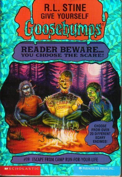 Heads up! You're on your way to sports camp! If only Uncle Ed can find the place. He’s the lamest driver ever. A sign up ahead says CAMP RUNNING LEAF. Hey! That's not the name of the camp you signed up for! But Uncle Ed is already driving away. Oh, well. Running Leaf is a sports camp too. Isn't that why the campers call it Camp Run-For-Your-Life? You've got a choice of events. If you enter the athletic competition called the "Selection," you could be selected for a free trip... to be a slave on Plant Xentron! Yikes. Maybe you'd better choose the wilderness hike instead. Just look out for that mountain lion over there! Oh and try to steer clear of the Zombies with rotting limbs... The choice is yours in this scary GOOSEBUMPS adventure that's packed with over 20 super-spooky endings!