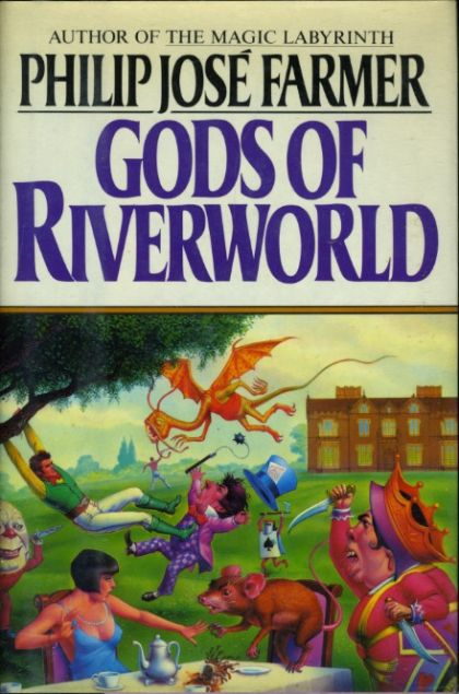 Gods of Riverworld by Philip Jose Farmer continues the epic chronicle of the planet called Riverworld, and of the thirty-five billion men and women who woke there one morning, to begin the first day of life after death. Resurrected by the power of an alien race, for reasons they can only guess at, unlikely fellow travelers like Mark Twain, Hermann Goring, and Cyrano de Bergerac wander the banks of a ten-million-mile-long river in search of their makers and the answers to this mystery. Now some of their questions have been answered, and even more raised, by their discovery of the giant tower that rises from Riverworld's north polar sea. Here is the great computer that controls the resurrection process -- and their mastery of that mechanism will make them like gods in Riverworld, with power of life and death over those billions of human lives. But they are not alone in the tower. Strange footsteps in the corridors, attempts on their lives, one "accident" after another, all lead them to an inevitable conclusion; either there is an assassin left behind in the tower -- or one of their band is a traitor!