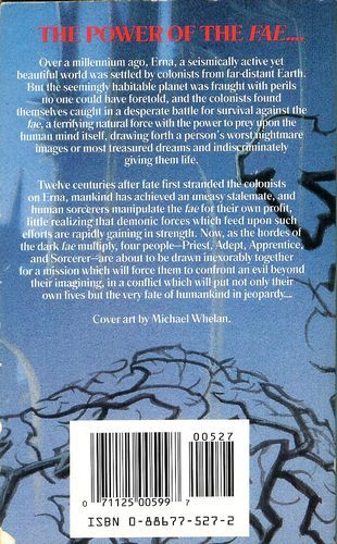 Blending science fiction and fantasy, the first book of the Coldfire Trilogy tells a dark tale of an alien world where nightmares are made manifest. Over a millennium ago, Erna, a seismically active yet beautiful world was settled by colonists from far-distant Earth. But the seemingly habitable planet was fraught with perils no one could have foretold. The colonists found themselves caught in a desperate battle for survival against the fae, a terrifying natural force with the power to prey upon the human mind itself, drawing forth a person's worst nightmare images or most treasured dreams and indiscriminately giving them life. Twelve centuries after fate first stranded the colonists on Erna, mankind has achieved an uneasy stalemate, and human sorcerers manipulate the fae for their own profit, little realizing that demonic forces which feed upon such efforts are rapidly gaining in strength. Now, as the hordes of the dark fae multiply, four people--Priest, Adept, Apprentice, and Sorcerer--are about to be drawn inexorably together for a mission which will force them to confront an evil beyond their imagining, in a conflict which will put not only their own lives but the very fate of humankind in jeopardy.