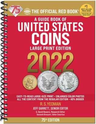 The Large Print Edition of the Guide Book of United States Coins gives you all the content from the regular edition, shown 45% bigger! The Official Red Book(R)--A Guide Book of United States Coins--is 75 years young and going strong. Since 1946 collectors around the country have loved the book's grade-by-grade coin values, historical background, detailed specifications, high-resolution photographs, and accurate mintage data. How rare are your coins? How much are they worth? The 75th edition of the Red Book tells you, covering everything from early colonial copper tokens to hefty Old West silver dollars and dazzling gold coins. You'll find 32,500+ prices and auction records for nearly 8,000 coins, tokens, medals, sets, and other collectibles. You'll also round out your education in classic and modern commemoratives, Proof and Mint coins, error coins, Civil War tokens, Confederate coins, Philippine coins struck under U.S. sovereignty, private gold, all the latest National Park quarters, Native American dollars, American Innovation dollars, bullion coins (silver, gold, platinum, and palladium), and more.