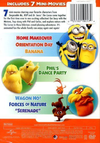 7 mini-movies starring your favorite characters from Despicable Me, HOP and Dr. Seuss' The Lorax come together in 1 exciting collection! It's fun the whole family can enjoy again and again!