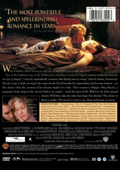 When guardian angel Seth -- who invisibly watches over the citizens of Los Angeles -- becomes captivated by Maggie, a strong-willed heart surgeon, he ponders trading in his pure, otherworldly existence for a mortal life with his beloved. The couple embarks on a tender but forbidden romance spanning heaven and Earth.
