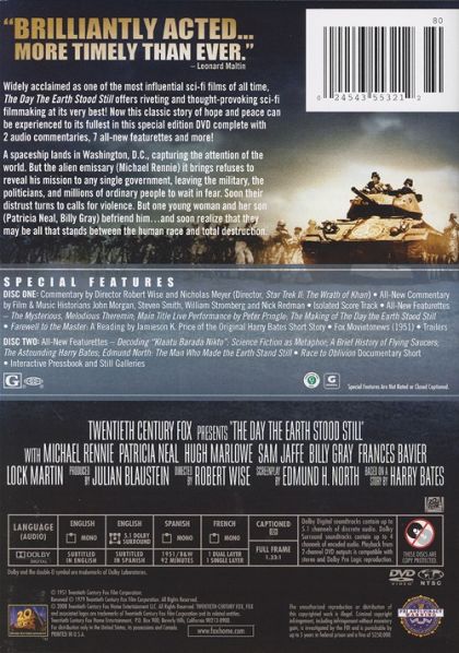 An alien and a robot land on earth after World War II and tell mankind to be peaceful or face destruction. A classic science fiction film from Robert Wise with an exceptional message.