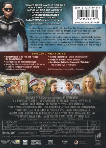 Hancock is a down-and-out superhero who's forced to employ a PR expert to help repair his image when the public grows weary of all the damage he's inflicted during his lifesaving heroics. The agent's idea of imprisoning the antihero to make the world miss him proves successful, but will Hancock stick to his new sense of purpose or slip back into old habits?