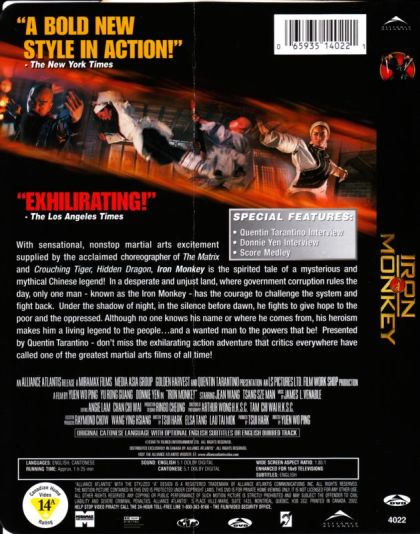 Iron Monkey is a Hong Kong variation of Robin Hood. Corrupt officials of a Chinese village are robbed by a masked bandit know as "Iron Monkey", named after a benevolent deity. When all else fails, the Governor forces a traveling physician into finding the bandit. The arrival of an evil Shaolin monk, brings the physician and Iron Monkey together to battle the corrupt government.