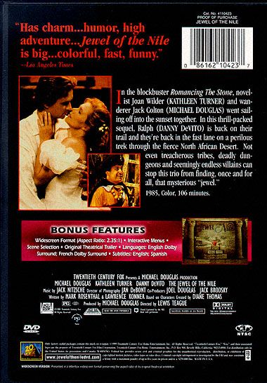 Joan Wilder is thrust back into a world of murder, chases, foreign intrigue... and love. This time out she's duped by a duplicitous Arab dignitary who brings her to the Middle East, ostensibly to write a book about his life. Of course, he's up to no good, and Joan is just another pawn in his wicked game. But Jack Colton and his sidekick Ralph show up to help our intrepid heroine save the day.