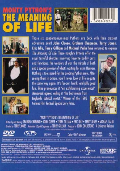 Monty Python's The Meaning of Life is a 1983 musical comedy film by the Monty Python comedy team. Unlike the two previous films they had made, which had more or less each told single, coherent stories, The Meaning of Life returns to the sketch comedy format of the troupe's original television series, loosely structured as a series of comic skits about the various stages of life.