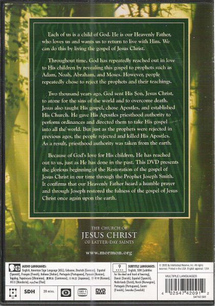 This film recounts how Joseph Smith's search for truth led to a heavenly vision and the restoration of the gospel of Jesus Christ.