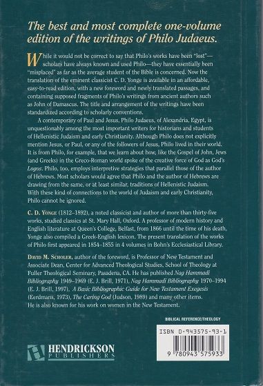 While it would not be correct to say that Philo's works have been "lost"--scholars have always known and used Philo--they have essentially been "misplaced" as far as the average student of the Bible is concerned. Now the translation of the eminent classicist C. D. Yonge is available in an affordable, easy-to-read edition, with a new foreword and newly translated passages, and containing supposed fragments of Philo's writings from ancient authors such as John of Damascus. The title and arrangement of the writings have been standardized according to scholarly conventions.A contemporary of Paul and Jesus, Philo Judaeus, of Alexandria, Egypt, is unquestionably among the most important writers for historians and students of Hellenistic Judaism and early Christianity. Although Philo does not explicitly mention Jesus, or Paul, or any of the followers of Jesus, Philo lived in their world. It is from Philo, for example, that we learn about how, like the Gospel of John, Jews (and Greeks) in the Greco-Roman world spoke of the creative force of God as God's "Logos." Philo, too, employs interpretive strategies that parallel those of the author of Hebrews. Most scholars would agree that Philo and the author of Hebrews are drawing from the same, or at least similar, traditions of Hellenistic Judaism. With these kind of connections to the world of Judaism and early Christianity, Philo cannot be ignored.