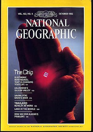 National Geographic Vol 162 No. 4 (October 1982) The Chip: Computer Mini-Marvel that is changing your life, California's silicon valley, Saving Pere David's Deer; Thailand: Royalty at work, Land in the Middle; Alask Pribilof