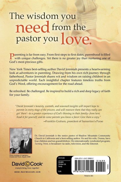The wisdom you need from the pastor you love. Parenting is far from easy. From first steps to first dates, parenthood is filled with unique challenges. Yet there is no greater joy than nurturing one of God's most precious gifts. New York Times best-selling author David Jeremiah presents a heartwarming look at adventures in parenting. Drawing from his own rich journey through fatherhood, Pastor David Jeremiah shares wit and wisdom on raising children in an unpredictable world. Each insightful chapter features timeless truths from God's Word, offering encouragement for the road ahead. Be refreshed. Be challenged. Be inspired to build a rich and deep legacy of faith for your family.