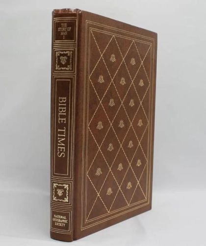 1977 - Hardback book with no dust jacket. Rich, brown leatherette with gold lettering and gold designs on the front board. Clean, sharp boards and corners. The Story of Man I. The top of the book, outer edges are gilted gold. Contains a rich brown, silk, ribbon bookmarker. Publisher, National Geographic Society. Marbled interior back boards and first and last pages. The book has a previous owner stamped name on the upper left page across from the title page. Editorial consultant - James B. Pritchard; Staff editor & art Director, Merle Severy; Gilbert M. Grosvenor, editor. Total 448 pages. A beautiful book that could be called like new if not for the previous owner's name in the book. A very nice religious/theology book. This is a single volume. *4BC2