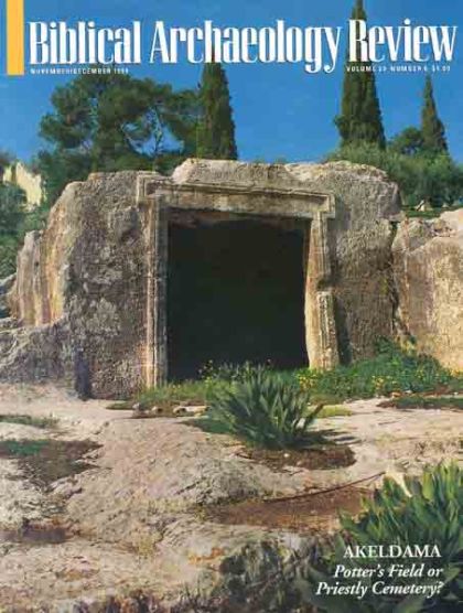 Biblical Archaeology Review, Vol 20 No 6 Nov/Dec 1994: AKELDAMA, POTTER'S FIELD OR PRIESTLY CEMETARY