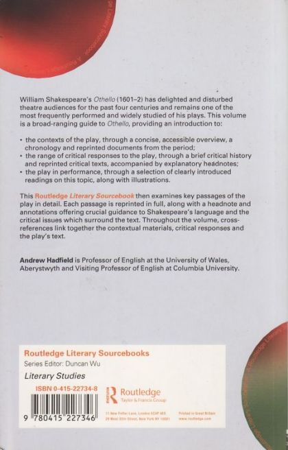 William Shakespeare's Othello (1601-2) has delighted and disturbed theatre audiences for the past four centuries, and remains one of the most frequently performed and widely studied of his plays. This volume is a broad-ranging guide to Othello, providing an introduction to:*the contexts of the play, through a concise, accessible overview, a chronology and reprinted documents from the period*the range of critical responses to the play, through a brief critical history and reprinted critical texts, accompanied by explanatory headnotes*the play in performance, through a selection of clearly introduced readings on this topic, along with illustrations.The sourcebook then examines key passages of the play in detail. Each passage is reprinted in full, along with a headnote and annotations offering crucial guidance to Shakespeare's language and the critical issues which surround the text. Throughout the volume, cross-references link together the contextual materials, critical responses and the play's text.If you are beginning to study Othello, this sourcebook is the one guide you cannot afford to be without.