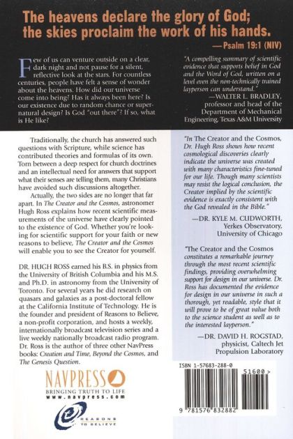 Few of us can venture outside on a clear, dark night and not pause for a silent, reflective look at the stars. For countless centuries people have felt a sense of wonder about the heavens. How did our universe come into being? Has it always been here? Is our existence due to random chance or supernatural design? Is God "out there"? If so, what is He like?Traditionally, the church has answered such questions with Scripture, while science has contributed theories and formulas of its own. Torn between a deep respect for church doctrines and an intellectual need for answers that support what their senses are telling them, many Christians have avoided such discussions altogether.Actually, the two sides are no longer that far apart. In The Creator and the Cosmos, astrophysicist Dr. Hugh Ross explains how recent scientific measurements of the universe have clearly pointed to the existence of God. Whether you're looking for scientific support for your faith or new reasons to believe, The Creator and the Cosmos will enable you to see the Creator for yourself.