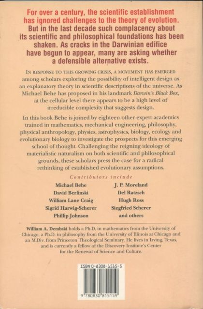For over a century, the scientific establishment has ignored challenges to the theory of evolution. But in the last decade such complacency about its scientific and philosophical foundations has been shaken. As cracks in the Darwinian edifice have begun to appear, many are asking whether a defensible alternative exists. In response to this growing crisis, a movement has emerged among scholars exploring the possibility of intelligent design as an explanatory theory in scientific descriptions of the universe. As Michael Behe has proposed in his landmark Darwin's Black Box, at the cellular level there appears to be a high level of irreducible complexity that suggests design. In this book Behe is joined by eighteen other expert academics trained in mathematics, mechanical engineering, philosophy, physical anthropology, physics, astrophysics, biology, ecology and evolutionary biology to investigate the prospects for this emerging school of thought. Challenging the reigning ideology of materialistic naturalism on both scientific and philosophical grounds, these scholars press the case for a radical rethinknig of established evolutionary assumptions.