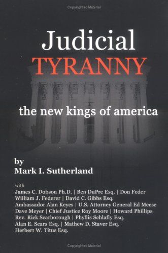 We live in the greatest nation on Planet Earth, but it is becoming more and more apparent that in order to keep it great, people must do something to stop the federal courts that are daily setting themselves above the law and dictating how we should live and what we should think. This book is designed to bring you up to speed on the ongoing struggle against an over-reaching judicial branch, without overwhelming you with legal double-speak. It is written in plain American, and presented in bite-sized pieces. After studying the principles in this book, you will better understand the role of government and how to react when the next judge throws out the will of the people in favor of the latest social engineering project. To bring our nation back from the elites in black robes that wish to redefine everything we are as Americans, it is going to take work. Edmund Burke, the famous British politician who supported our War of Independence while serving in the British Parliament, stated a simple truth that still applies to us today: "The only thing necessary for the triumph of evil is for good men to do nothing." We have done nothing for too long, and we are paying the price today. But it is not too late. The fight has only just begun. But by picking up this book you are taking the first step, and together we can turn our nation around. This book features chapters from some of our nation's most prominent leaders in the battle for continued liberty and freedom in our nation, such as: A CONSTITUTIONAL CRISIS-US Attorney General Ed Meese THOU SHALT HAVE NO GOD BEFORE US-Benjamin D. DuPr , Esq. THE POWER OF OUR TRUE HISTORY-Dave Meyer A CHRISTIAN AMERICA?-David C. Gibbs III, Esq. WHAT LAW?-Ambassador Alan Keyes WHO IS AMERICA'S SOVERIEGN?-The Honorable Howard Phillips THE RULE OF LAW-Chief Justice Roy S. Moore JUDICIAL ATHEISM-Rev. Rick Scarborough REDEFINING THE RULES-Mark Sutherland AMERICAN OLIGARCHY-William J. Federer IT'S A JUDGE ISSUE-Phyllis Schlafly, Esq. JUDICIAL ORDERED MURDER?-Dr. James Dobson INTERNATIONAL LAW?-Alan E. Sears, Esq. JUST SAY NO TO JUDICIAL TYRANNY-Don Feder THE SOUL OF AMERICA-Rev. Rick Scarborough WHEN IN THE COURSE-Mathew D. Staver, Esq. THE POWER OF EACH STATE-Herbert W. Titus, Esq. THE FINAL MOMENTS OF CONFLICT-Ambassador Alan Keyes TO IMPEACH OR NOT TO IMPEACH?-Mark Sutherland WHAT DO I DO NOW?-Mark Sutherland Plus the entire Declaration of Independence, Constitution and Amendments to the US Constitution.