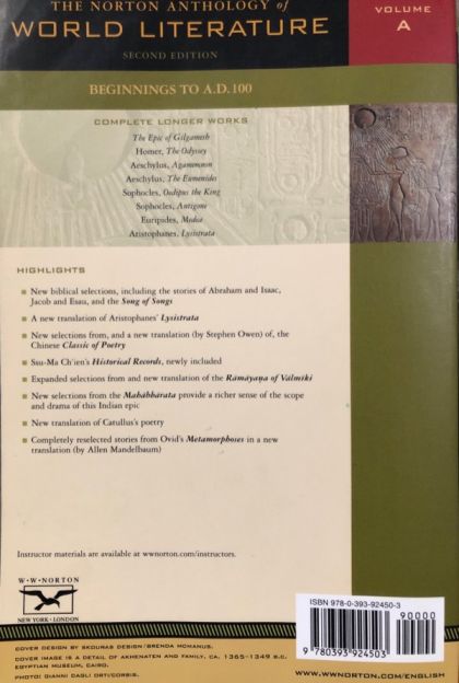Leading the field once again, Norton is proud to publish the anthology for the new century, The Norton Anthology of World Literature, Second Edition. Now published in six paperback volumes (packaged in two attractive slipcases), the new anthology boasts slimmer volumes, thicker paper, a bolder typeface, and dozens of newly included or newly translated works from around the world. The Norton Anthology of World Literature represents continuity as well as change. Like its predecessor, the anthology is a compact library of world literature, offering an astounding forty-three complete longer works, more than fifty prose works, over one hundred lyric poems, and twenty-three plays. More portable, more suitable for period courses, more pleasant to read, and more attuned to current teaching and research trends, The Norton Anthology of World Literature remains the most authoritative, comprehensive, and teachable anthology for the world literature survey.