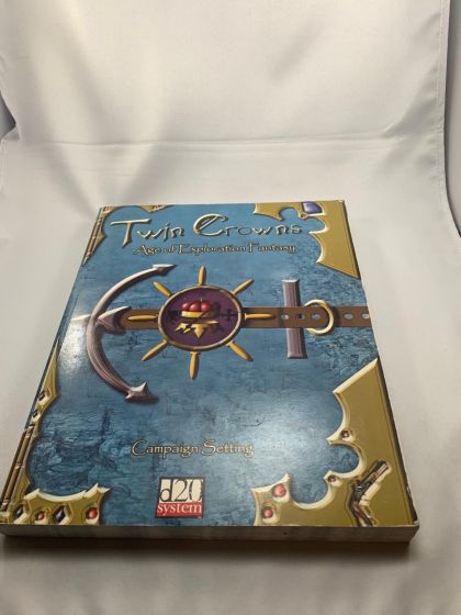Twin Crowns - Age of Exploration Fantasy is a campaign setting and rules expansion for Dungeons & Dragons® Third Edition, published by Wizards of the Coast®. You need the D&D Core Rulebooks to use this expansion. The Twin Crowns world has a flavor like none other, combining the high fantasy elements with historical elements of the Age of Exploration. A comprehensive system for naval travel and combatA rich and complete world with detailed geographic and cultural informationAn elegant ritual system expanding both arcane and divine powerAn elaborate cosmology and system of religion with far reaching effects beyond for every classHundreds of pages encompassing new races, feats, skills, spells, prestige classes, magic items, and monsters usable in any campaign Great sailing vessels cross the Quilla Ocean from the Northern and Southern Empires to the colonies to the far west, avoiding savage pirates, vicious sea monsters and most of all, one another! The two Empires war, not only on the battlefield, but in the marketplaces as well. It is a race for power, resources and wealth. In the heavens above, twelve deities look down upon Ptalmanar and guide it's people. The most devout worshippers undergo rituals of initiation to take a piece of their god's power into their own souls, opening their bodies to the touch of the divine. The greatest among them can rise to the level of High Priest, assuming the mantle of leadership of the flock and bearing the terrible burden of being the terrestrial voice of their deity. The Maker, creator of all, sits atop the divine wheel with the gods of light cascading down each side. At the bottom, surrounded by his dark children, sits the Unmaker, force of destruction and death. Their eternal struggle is played out wholly in the actions of their earthly followers, ever competing for dominance of the world and the place of Good and Evil. Our game world bears a richness and depth that few others can match. Highly detailed religion, with three tiers of power within each church that lie beyond just Clerics, Paladins and Druids. The two warring Empires are each carefully detailed so they bear their own identity and atmosphere. The colonial holdings across the ocean and the exploration of the new world are vexed by a fierce militant kingdom of elves seeking to expel the human invaders. Twin Crowns also offers a new system of arcane magic embodied by potent rituals that go far beyond the casting of a simple spell. Guilds of mages guard and covet the secrets of these powerful ensorcellments, and vie for korba, the essential ingredient in their casting. This is high fantasy unlike any you have ever experienced.