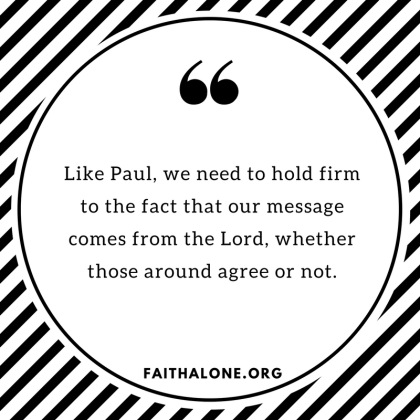 There is a lesson for us today. As Free Grace messengers, we proclaim the same message of grace that Paul got from the Lord. The world often says that we have no business teaching these things. Like Paul, we need to hold firm to the fact that our message comes from the Lord, whether those around agree or not.