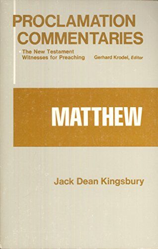 Professor Kingsbury surveys Matthew's teachings about Christ, his Kingdom, and Christian discipleship in this concise yet scholarly textbook. Originally published as part of the "Proclamation" series of Bible commentaries, Matthew has earned wide respect in seminary classrooms as an essential text on the First Gospel. Kingsbury uses the method of composition criticism to examine why Matthew wrote this Gospel. Is it a biography, a manual of doctrine, an inspirational book, or "something else written for still a different purpose?" (p. 1). The writer's purpose is critical to understanding his message. With discerning care, Professor Kingsbury weighs various theories about the Gospel of Matthew to give the reader a well-informed understanding of what scholars have learned about this book.