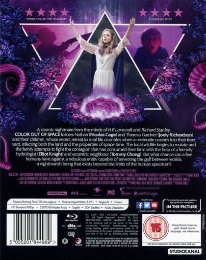 The Gardner family moves to a remote farmstead in rural New England to escape the hustle of the 21st century. They are busy adapting to their new life when a meteorite crashes into their front yard, melts into the earth, and infects both the land and the properties of space-time with a strange, otherworldly colour. To their horror, the family discovers this alien force is gradually mutating every life form that it touches—including them.