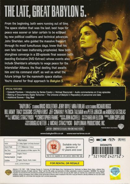 The final episode, "Sleeping in Light," was directed by J. Michael Straczynski and made an epilogue to the series. Set 20 years later, after all the sound and fury this quiet, elegiac tale is the apotheosis of the love story that proved the balance to the tragedy of the preceding darkness. A personal story resolved against a background of the epic, at once transcendent, deeply human, and profoundly optimistic, "Sleeping in Light" is as moving as any hour in the history of television drama and a thoroughly satisfying conclusion to one of the greatest series ever made. --Gary S. Dalkin