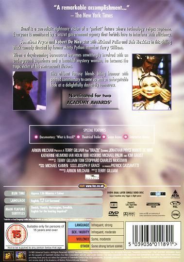 A human cog (Sam Lowry) in the highly inefficient government machine of a future world (with a 1970s flavor) discovers a paperwork error that has resulted in the arrest of a shoe repairman (Mr. Buttle) instead of a rouge heating engineer (Harry Tuttle). On a quest to right this wrong, he discovers the girl of his dreams (Jill Layton) and together they navigate the labyrinth of bureaucracy in an attempt to assert their humanity in a world gone mad with technology for technology’s sake. Elaborate dream sequences demonstrate Sam’s desire to fly away from the mire of mind deadening government control.