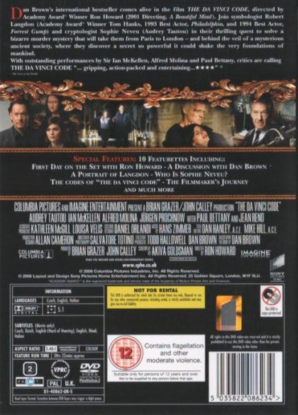 Taken solely as a mystery thriller, the movie almost works--despite some gaping holes--mostly just because it keeps moving forward at the breakneck pace set in the book. Brown's greatest trick might have been to have the entire story take place in a day so that the action is forced to keep going, despite some necessary pauses for exposition. Hanks and Tautou are just fine together but not exactly a memorable screen pair; meanwhile, Sir Ian McKellen's scenery-chewing as pivotal character Sir Leigh Teabing is just what the film needs to keep it from taking itself too seriously. In the end, this hit movie is just like a good roller-coaster ride: try not to think too much about it--just sit back and enjoy the trip. --Daniel Vancini, Amazon.com