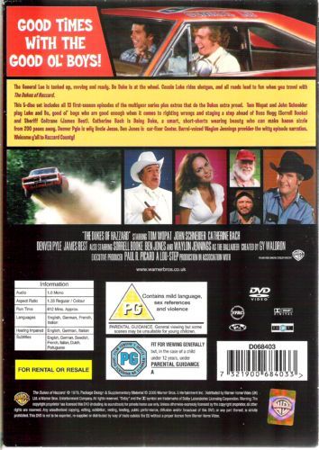 This three-disc set includes all 13 initial episodes of Dukes from 1979, a period fans fondly recall because some of the programs were shot on location in Covington, Georgia, rather than a Burbank backlot. Also noteworthy is that a couple of key characters, particularly Hazzard County's corrupt lawman, Roscoe P. Coltrane (James Best), hadn't gelled yet into permanent hayseed stereotypes and were arguably more interesting at the beginning. At the center of the action are Sheriff Coltrane's nemeses, cousins Bo Duke (John Schneider) and Luke Duke (Tom Wopat), a couple of wild boys buzzing through the backwoods in the "General Lee," a souped-up Dodge Charger. Bo and Luke are good at heart but have to behave themselves while on indefinite probation, complicating but not halting their efforts to vex Roscoe and his patron, diminutive bigwig Boss Hogg (Sorrell Booke). The enmity runs both ways: Roscoe and Boss Hogg, with the aid of witless Deputy Enos Strate (Sonny Shroyer), dream up ways of eliminating the Dukes--including their wise old Uncle Jesse (Denver Pyle)--but their efforts always backfire.