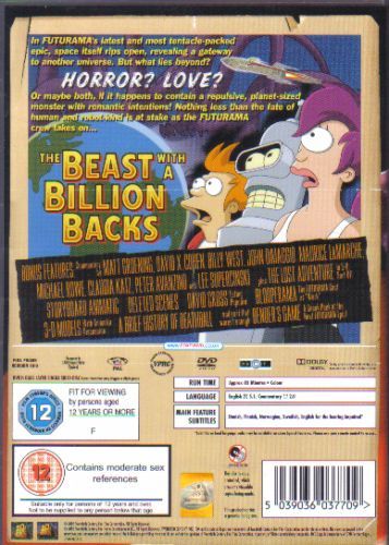 Two further direct-to-DVD movies are in the works at the time of this review being written, and with them comes continued hope for a full-on revival of one of the funniest animated programmes of the past ten years. It may not make suitable family viewing, but Futurama is brilliant television, and The Beast With A Billion Backs offers plenty of evidence as to why. Strongly recommended. --Jon Foster