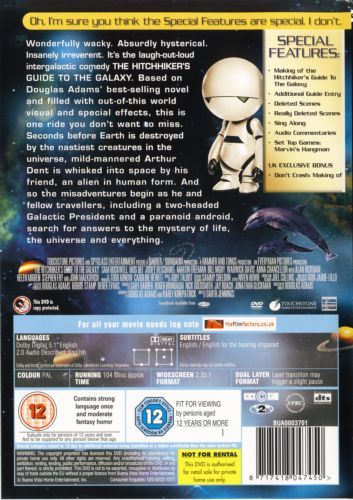 Don't panic! After twenty years stuck in development (a mere blink compared to how long it takes to find the answer to life, the universe, and everything), The Hitchhiker's Guide to the Galaxy has finally been turned into a movie. Following the radio play, TV series, commemorative towel, and books, this latest installment in the sci-fi-comedy franchise is based on the screenplay and detailed notes by Douglas Adams. For those unfamiliar with the story, everyman Arthur Dent (Martin Freeman) wakes up one morning to discover that his house is set to be demolished to make room for a bypass. Little does he know the entire planet Earth is also set to be destroyed for an interplanetary bypass by the Vogons, a hideous and bureaucratic race of aliens realized in the film by Jim Henson's Creature Shop. Whisked off the planet by his best friend, alien-in-disguise Ford Prefect (Mos Def), Dent embarks on a goofy jaunt across the galaxy accompanied by his trusty Hitchhiker's Guide, which looks like a really fancy PDA. The guide itself provides some of the funniest bits of the movie, little animated shorts that explain the ludicrous life forms and extraterrestrial phenomena our heroes encounter. Along the way Arthur meets the two-headed party animal/president of the galaxy Zaphod Beeblebrox (Sam Rockwell) and develops an unrequited crush on fellow earthling Trillian (Zooey Deschanel). The creatures and sets are inspired and answer to the sci-fi fan's primal need to see lots and lots of cool stuff. Where the story stumbles is in the telling--as books, the Hitchhiker's Guide was foremost about goofy and brilliant ideas that raised questions about our place in the universe while getting a laugh. The movie has enough trouble figuring out how to get the characters from one fantastical location to the next that Adams's funniest concepts often feel left in the dust. While the reverence the filmmakers felt toward Adams's legacy is apparent, one wonders what we could have expected had the creator of this science fiction universe lived to see it with his own eyes. --Ryan Boudinot, Amazon.com