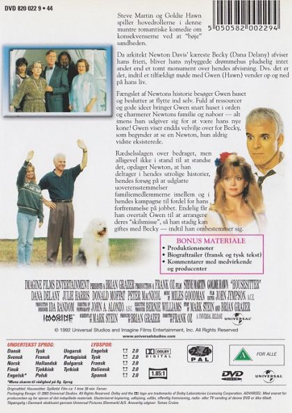 A slick, smart vehicle for Steve Martin and Goldie Hawn, Housesitter offers an acceptably daffy premise and enough inventive business to sustain it through to the, not unexpected, happy ending. Architect Martin builds a dream home for his childhood sweetheart (Dana Delaney) only to be rejected when he proposes marriage. After a one-night stand, Hawn--a daffy waitress with a gift for making up improbable but convincing lies--moves into Martin's house and tells his parents (Donald Moffatt, Julie Harris) and the whole community that she is his surprise new wife. When he sees how this impresses Delaney, Martin goes along with the charade, encouraging wilder and wilder fictions and doing his best to join in so that he can rush through to a divorce and move on to the woman he has always wanted. Hawn has to recruit a couple of winos to pose as her parents and impress Martin's boss into giving him a promotion, but we glimpse her real misery at his eventual intention to toss her out of the make-believe world she has created because her own real background is so grim.