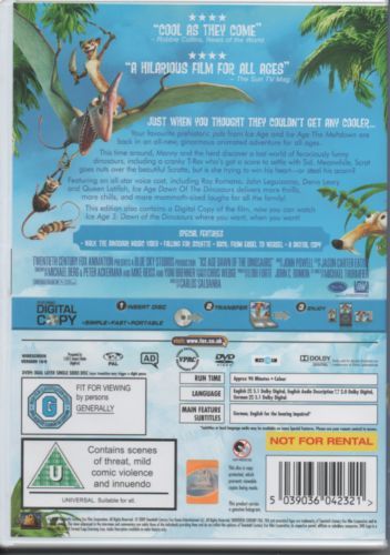 Ice Age 3: Dawn of the Dinosaurs is the third move in the popular Ice Age franchise. Picking up up where the second movie left off, Manny (Ray Romano) and Eliie (Queen Latifah) have settled down, and are ready to start a family. This new focus on family over friends leaves Manny’s companions Sid the Sloth (John Leguizamo) and Diego the tiger (Dennis Leary) to feel neglected and unappreciated. When he stumbles upon a cache of dinosaur eggs, Sid decides to raise them as his own. Matters are complicated, however, when the rightful mother of the eggs appears, looking for her offspring. Sid is taken deep underground to the dinosaurs lair, and his friends must rescue him. They are joined by a new character, a swashbuckling weasel named Buck (Simon Pegg). Scratch the squirrel (Chris Wedge) also returns, this time, meeting his match in his quest for acorns.