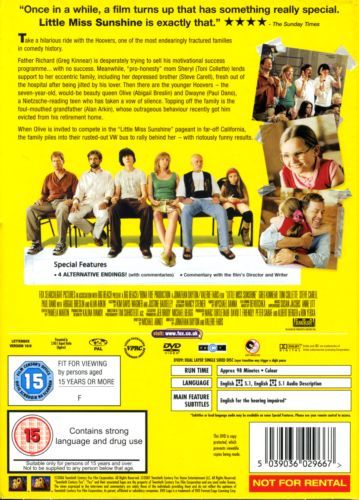 Little Miss Sunshine is a character driven film about a rather dysfunctional family. The characters and their oddities are listed below: Grandpa (was kicked out of a nursing home and enjoys snorting heroin), Dad (a motivational speaker wannabe), Mom (fairly balanced, but secretly smokes cigarrettes), Son (He is a nihlist and has taken a vow of silence until he makes it into the air force academy), Daughter (an adoreable little girl who only wants to win a state beauty pageant) and Mom's Brother (Tried commiting suicide and failed). The movie centers on this group of peoples' trip across the nation in an old VW bus. They are going to California so the little girl can compete in the Little Miss Sunshine pageant. Needless to say, this odd group of characters has some funny and rather interesting adventures on the road. Sadly, they lose one of the family members along the way, but grow closer to each other in the end.