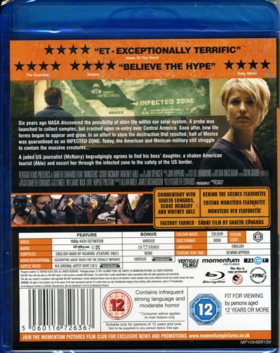 “Monsters” is the story of the world’s quest for alien life and the results of such explorations. When a deep space probe collects alien DNA and crashes upon reentry, half of New Mexico becomes infected with an alien strange of DNA causing new life to evolve. Now New Mexico is cut off from the rest of the country as an infected zone. Six years later Andrew Kaulder (Scoot McNairy) a photo journalist is hired to retrieve a wealthy tycoon’s daughter, Samantha Wynden (Whitney Able) and bring her home! The two now have to navigate through the infected region avoiding all manner of new horrors.