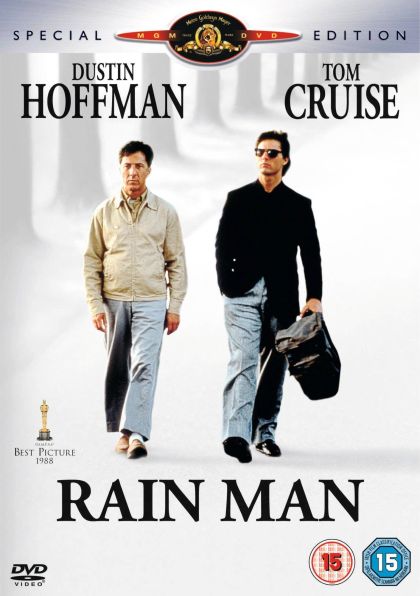 Charlie Babbit (Tom Cruise) is having financial woes when his father passes away. He expects to inherit the estate but is shocked to elarn that he has a brother and that the money went to that brother. He travels to the mental institution where his brother is a patient. His brother, Raymond, (Dustin Hoffman) turns out to be a savant who is a genius with numbers. Charlie takes his father's old car and his brother and starts driving across the country to his home. Along the way he finds out how difficult it can be to have his brother around. Raymond won't fly. Raymond refuses to wear any underwear except the ones purchased at K-Mart in Cincinnati. Raymond has to see Judge Wopner every day. But, he also starts realizing that he cares about his brother. He petitions the court for custody of Raymond, but finally accepts the fact that Raymond is beter off back in the home.