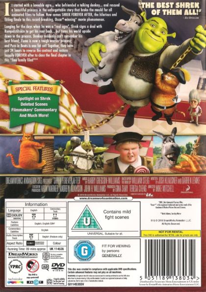In the movie, "Shrek Forever After" Shrek (Mike Myers) whom is now living his supposed "happily ever after" with his wife Fiona (Cameron Diaz) and his children finds himself unable to deal with the constant troubles that come with being a normal father. Eventually he reaches the brink and can't take his new life anymore. This is where Rumpelstiltskin (Walt Dohrn) comes into the movie by offering Shrek a deal wherein he erases one day in his life and he gets him back his days as a lone ogre. Obvious to the plot Rumpelstiltskin takes the day Shrek was born thus causing an entirely different future. Now it is up to Shrek to get back his future from Rumpelstiltskin by having Fiona fall in love with him all over again, as only true loves kiss can get him out of his deal.
