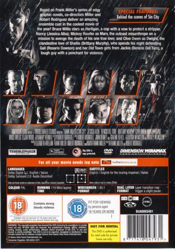 Based on three of Miller's immensely popular and immensely gritty books (The Hard Goodbye, The Big Fat Kill, and That Yellow Bastard), Sin City is unquestionably the most faithful comic-book-based movie ever made. Each shot looks like a panel from its source material, and director Rodriguez (who refers to it as a "translation" rather than an adaptation) resigned from the Directors Guild so that Miller could share a directing credit. Like the books, it's almost entirely in stark black and white with some occasional bursts of color (a woman's red lips, a villain's yellow face). The backgrounds are entirely digitally generated, yet not self-consciously so, and perfectly capture Miller's gritty cityscape. And though most of Miller's copious nudity is absent, the violence is unrelentingly present. That may be the biggest obstacle to viewers who aren't already fans of the books and who may have been turned off by Kill Bill (whose director, Quentin Tarantino, helmed one scene of Sin City). In addition, it's a bleak, desperate world in which the heroes are killers, corruption rules, and the women are almost all prostitutes or strippers. But Miller's stories are riveting, and the huge cast--which also includes Jessica Alba, Jaime King, Brittany Murphy, Rosario Dawson, Benicio Del Toro, Elijah Wood, Nick Stahl, Michael Clarke Duncan, Devin Aoki, Carla Gugino, and Josh Hartnett--is just about perfect. (Only Bruce Willis and Michael Madsen, while very well-suited to their roles, seem hard to separate from their established screen personas.) In what Rodriguez hopes is the first of a series, Sin City is a spectacular achievement. --David Horiuchi, Amazon.com