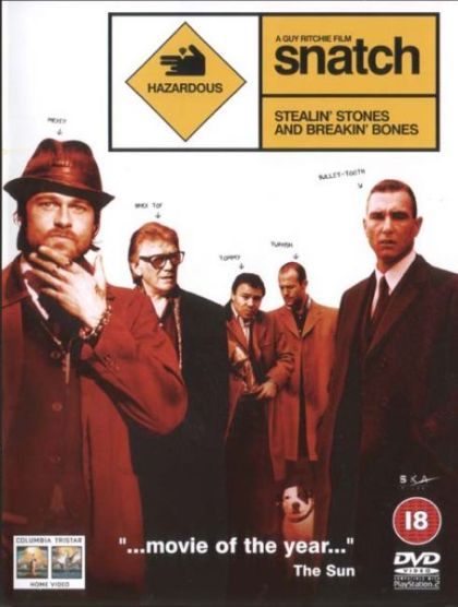 This action-packed drama set in London, and directed by Guy Ritchie, follows an assortment of characters connected to each other by way of a diamond heist. The story's primary characters, Mickey [Brad Pitt] and Turkish [Jason Statham] carry much of the plot, with much of the "shucking and jiving" being offered by the other colorful characters. An indestructible Russian with a thing for knives and cheating, a trio of clumsy two-bit hustlers, and a man with four-fingers and briefcase [Benicio Del Toro] complete the hilarious ensemble cast. The accents are strong, and the action is quick, with multiple story lines setting the pace.