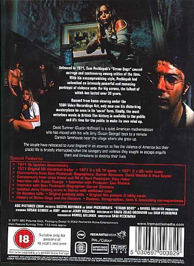 Straw Dogs is an American thriller from director Sam Peckinpah from 1971. Dustin Hoffman stars as a mathematician who faces a ruthless revenge of pressing power.