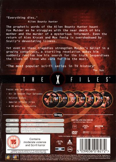 The series has settled enough to play variations on earlier hits: following the liver vampire, we have a melanin vampire ("Teliko") and a cancer vampire ("Leonard Betts"), and return engagements for the oily contact lens aliens and the weasely ex-Agent Krycek ("Tunguska"/"Terma"). Occasional detours into send-up or post-modernism are indulged, yielding both the season's best episode ("Small Potatoes") and its most disappointing ("Musings of a Cigarette-Smoking Man"). "Small Potatoes", with the mimic mutant who tries out Mulder's life and realises what a loser he is (how many other pin-up series heroes get answerphone messages from their favourite phone-sex lines?), works as a genuine sci-fi mystery--for once featuring a mutant who doesn't have to kill people to live--and as character insight. --Kim Newman