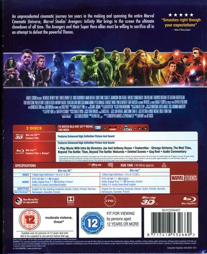 As the Avengers and their allies have continued to protect the world from threats too large for any one hero to handle, a new danger has emerged from the cosmic shadows: Thanos. A despot of intergalactic infamy, his goal is to collect all six Infinity Stones, artifacts of unimaginable power, and use them to inflict his twisted will on all of reality. Everything the Avengers have fought for has led up to this moment - the fate of Earth and existence itself has never been more uncertain.